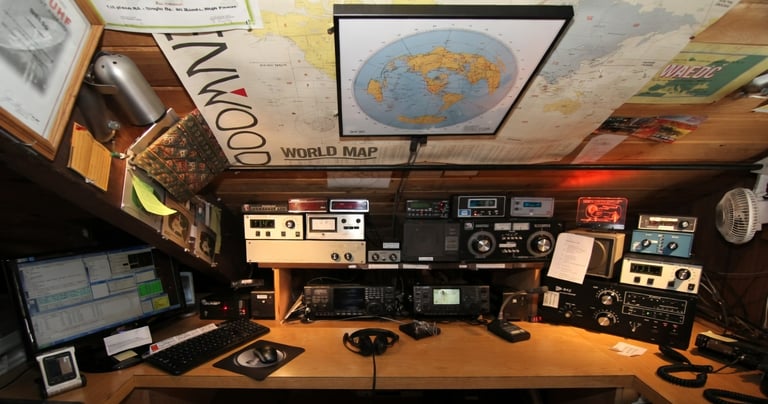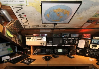 The "ham shack" is located in the loft and is equipped with the following: