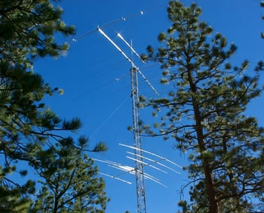 A 50-ft. tower supports a 3EL STEPPIR for 10,12,15,17,20,30 and 40 mtrs.